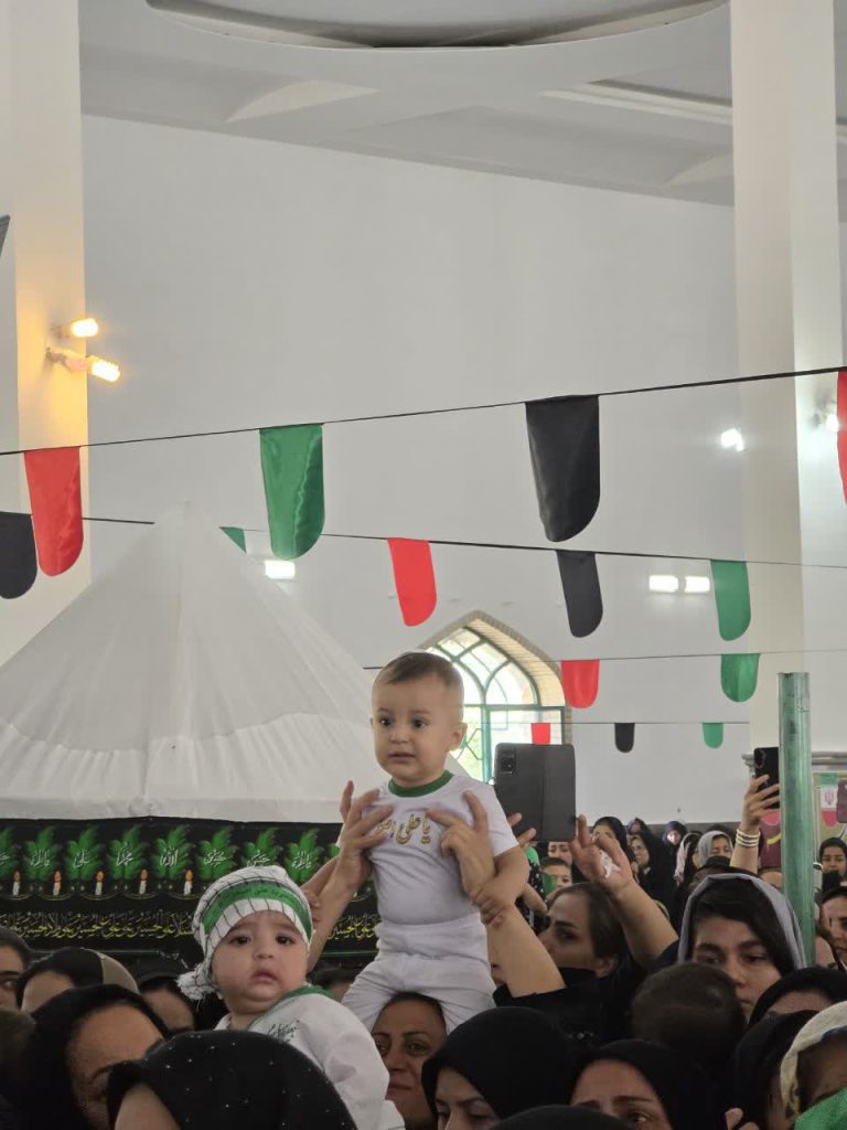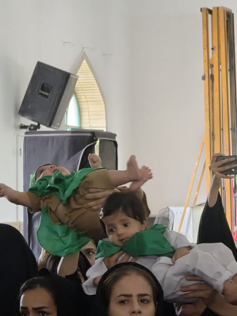 به گزارش پایگاه خبری تحلیلی نارخبر؛ امروز مادران ساوجی با چهرههای حزن آلود همراه با قطرات اشک، بر شیرخوارگان خود ردای سبز علوی پوشاندند و به یاد علیاصغر(ع) با نوای لالایی حضرت رباب همصدا شدند.