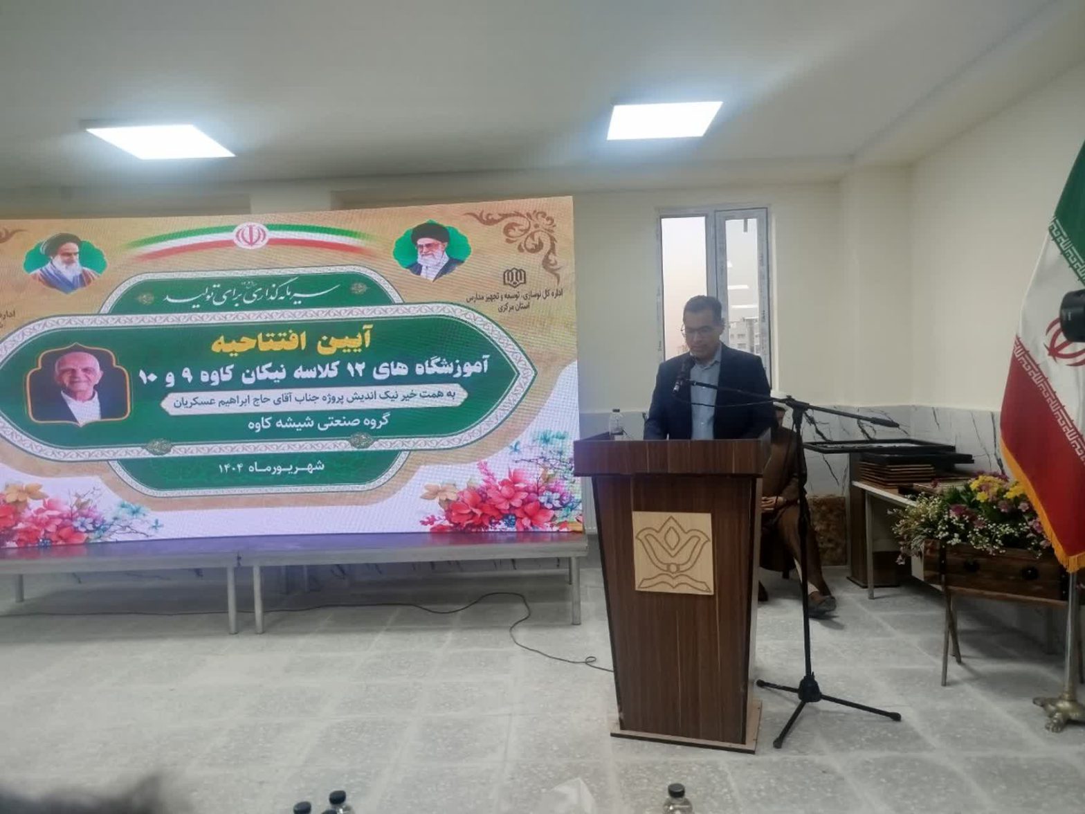 به گزارش خبرنگار پایگاه خبری تحلیلی «دیار آفتاب» به نقل از «نار خبر» رضا مظهری، عصر یکشنبه در آیین افتتاح دو آموزشگاه ۱۲ کلاسه نیکان ۹ و ۱۰ ساوه گفت: نخستین پروژه آموزشی این خانواده در سال ۱۳۹۲ کلید خورد و امروز پس از گذشت بیش از یک دهه، مجموع فضاهای احداث‌شده توسط آنان از مرز ۴۰ هزار مترمربع گذشته است؛ رقمی که در سطح کشور نمونه‌ای کم‌نظیر محسوب می‌شود.