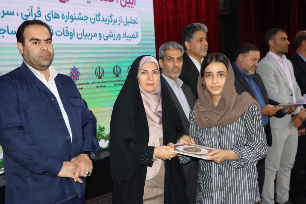 در ادامه، از برگزیدگان جشنوارههای قرآنی، سرود، المپیاد ورزشی و مربیان فعال اوقات فراغت با اهدا لوح سپاس و هدایایی تقدیر به عمل آمد.