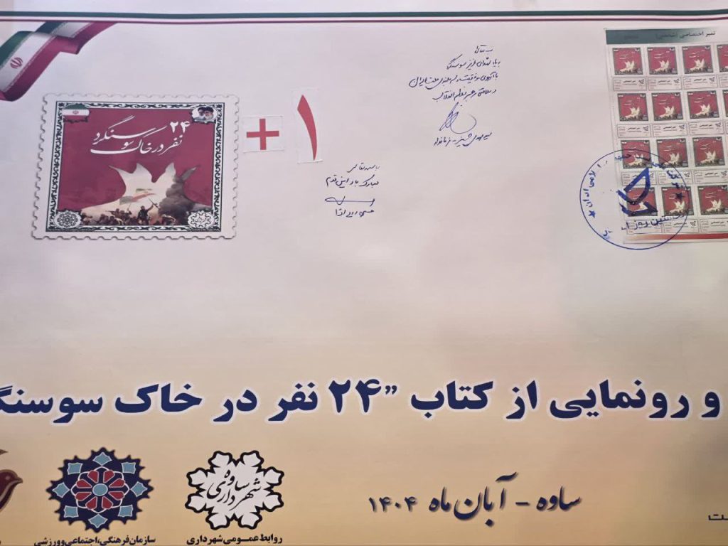 در این آیین، کتاب ارزشمند «۲۴ نفر در خاک سوسنگرد» که روایتی مستند و ادبی از رشادت‌ها و فداکاری‌های مردان ساوجی در آبان‌ماه سال ۵۹ است، به همراه تمبر یادبود رونمایی شد. همچنین ایستگاه یادمان شهدا با همکاری کانون خدمت رضوی ایثار و شهادت در محل برپا شد و خادمیاران معزز شهید گمنام را به داخل سالن مراسم حمل کردند و فضای محفل معطر به یاد و حضور شهیدان شد.